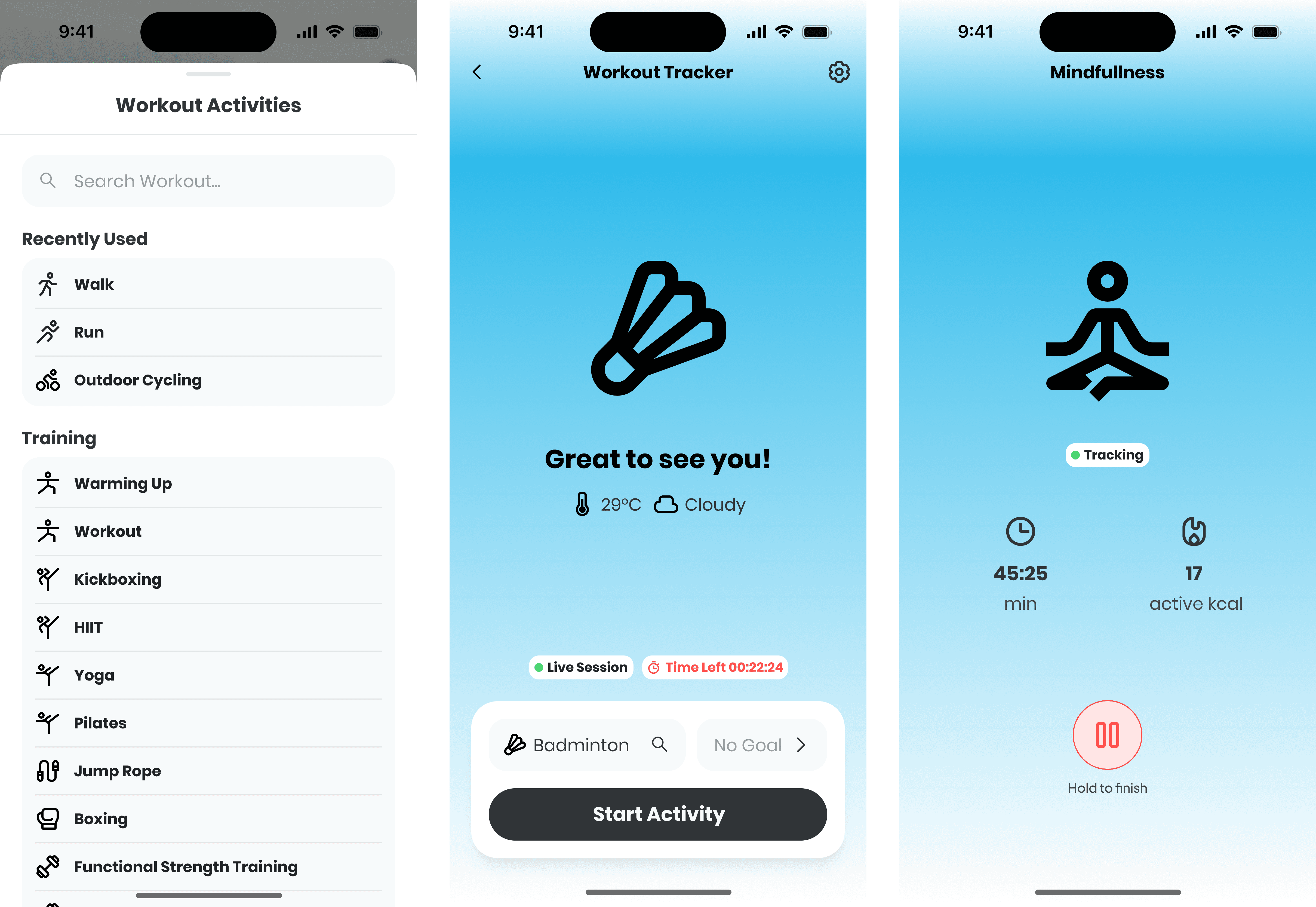 Berbeda dengan Steps Tracker yang bekerja secara otomatis sepanjang hari, Workout Tracker digunakan ketika peserta melakukan sesi olahraga tertentu.